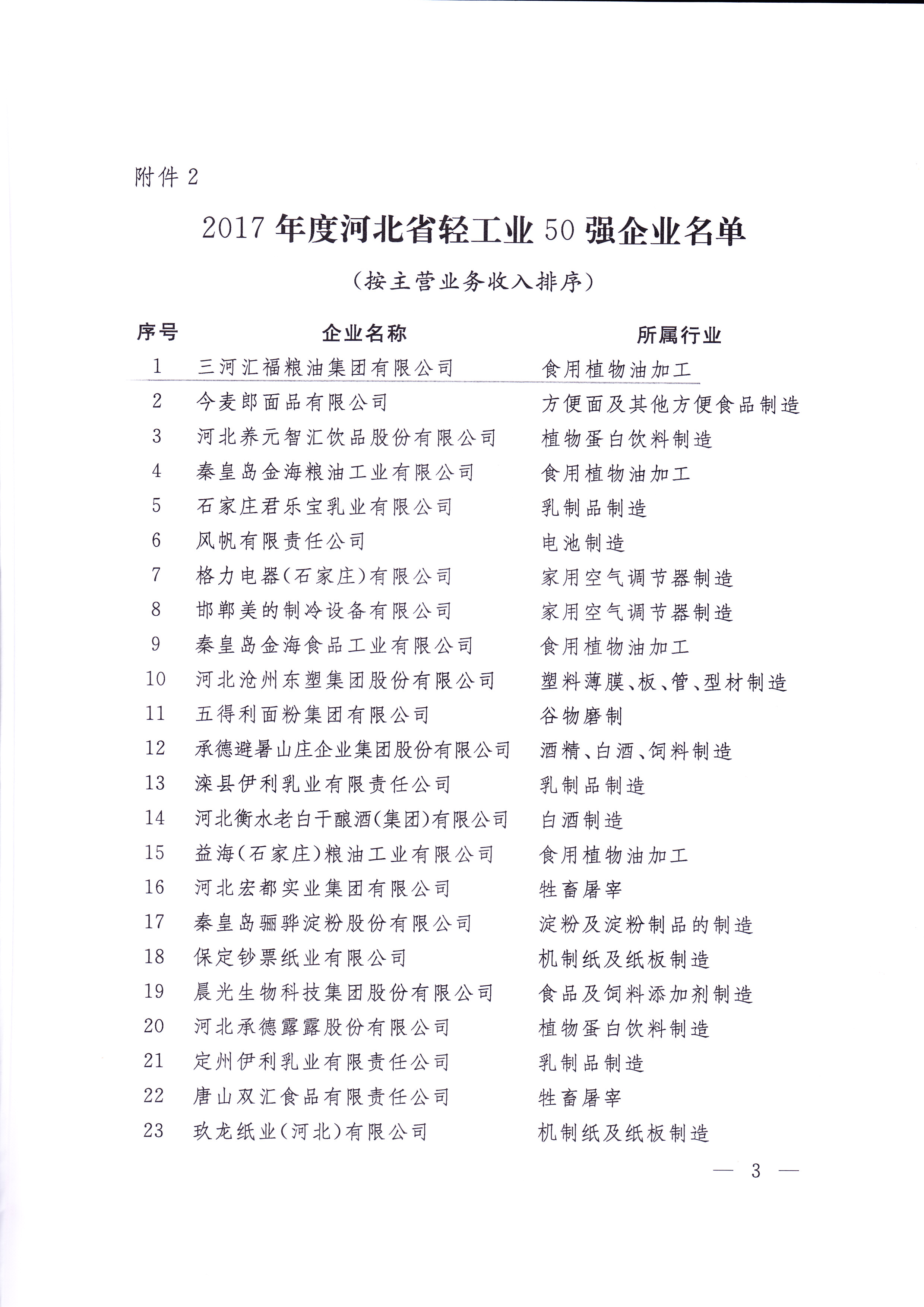 三河汇福粮油集团有限公司被授予“2017年度河北省轻工业排头兵、50强企业”称号